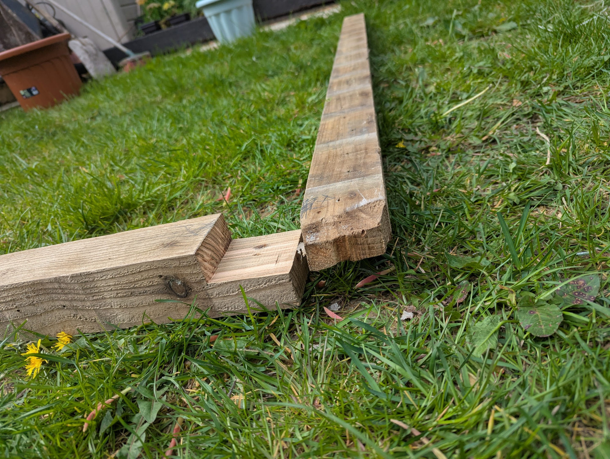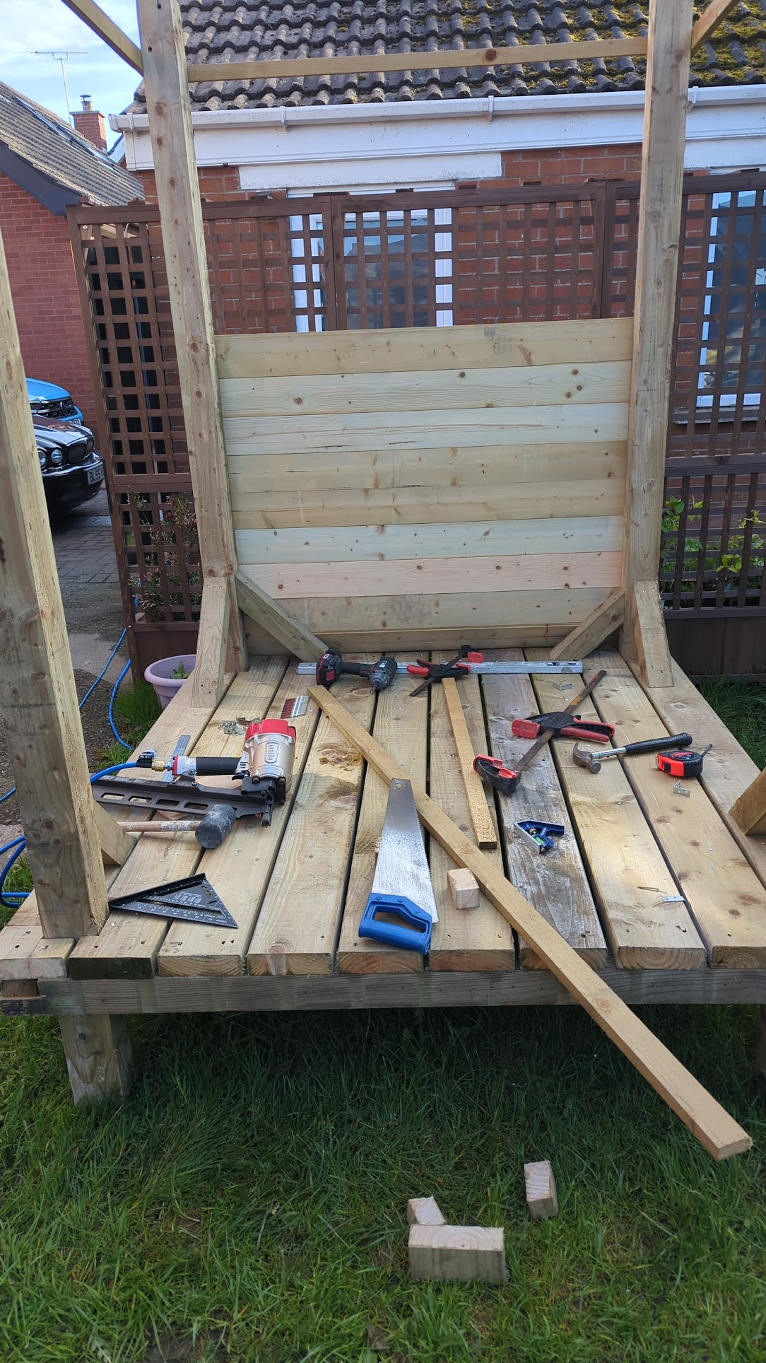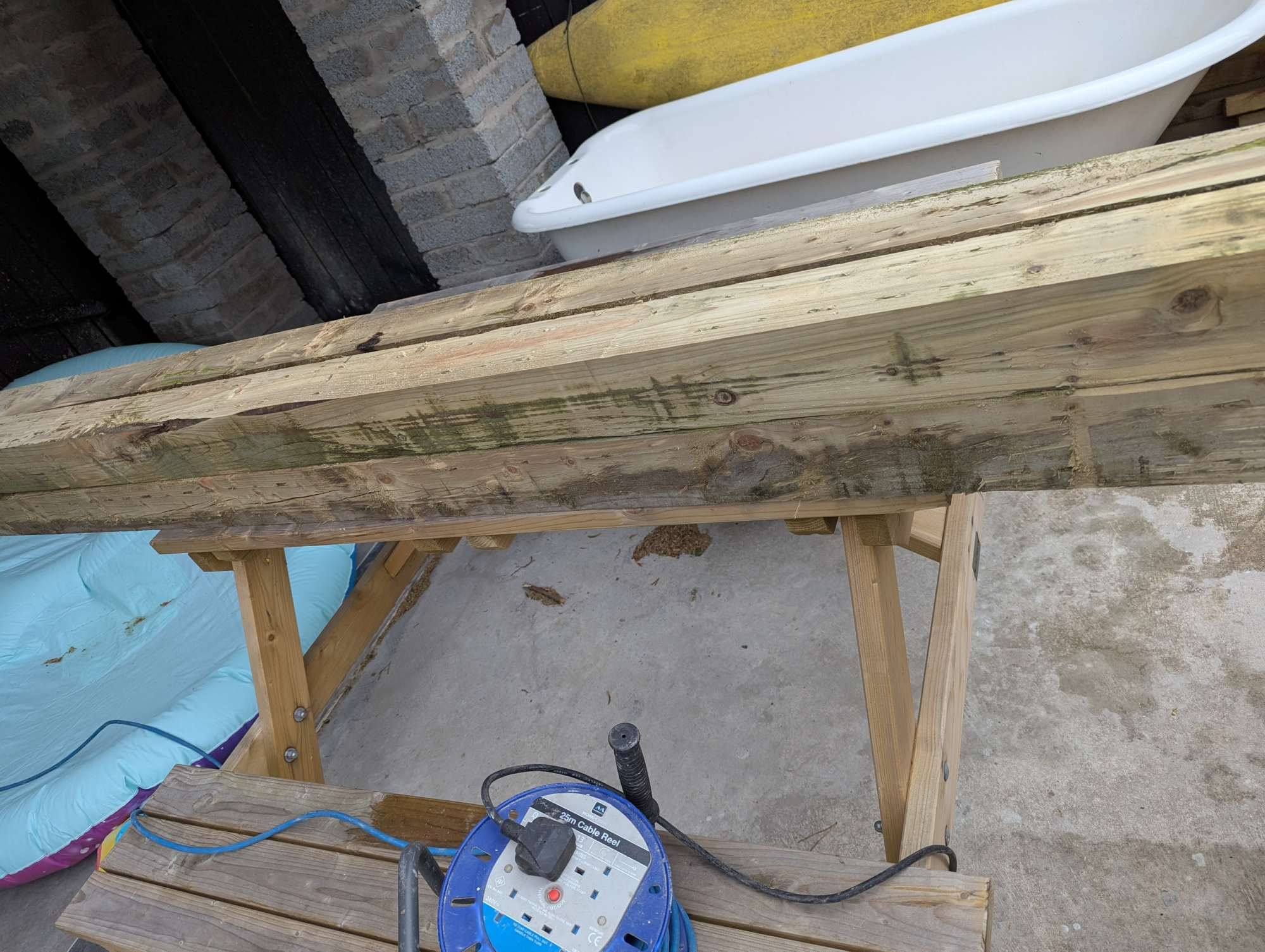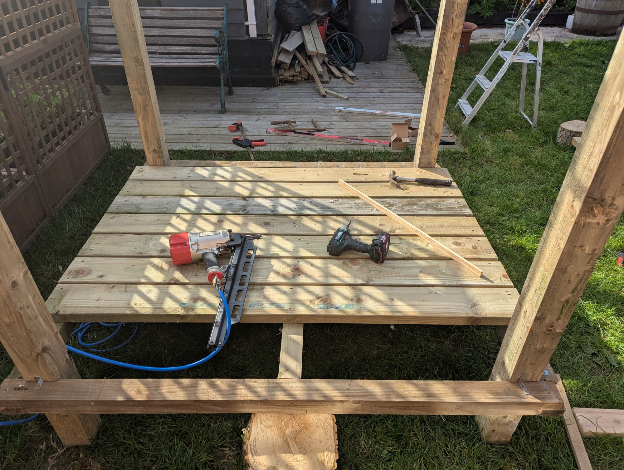 The pergola provided the 4 of 4×4 for the uprights and the 4 of 6x2s which I used for the flooring.